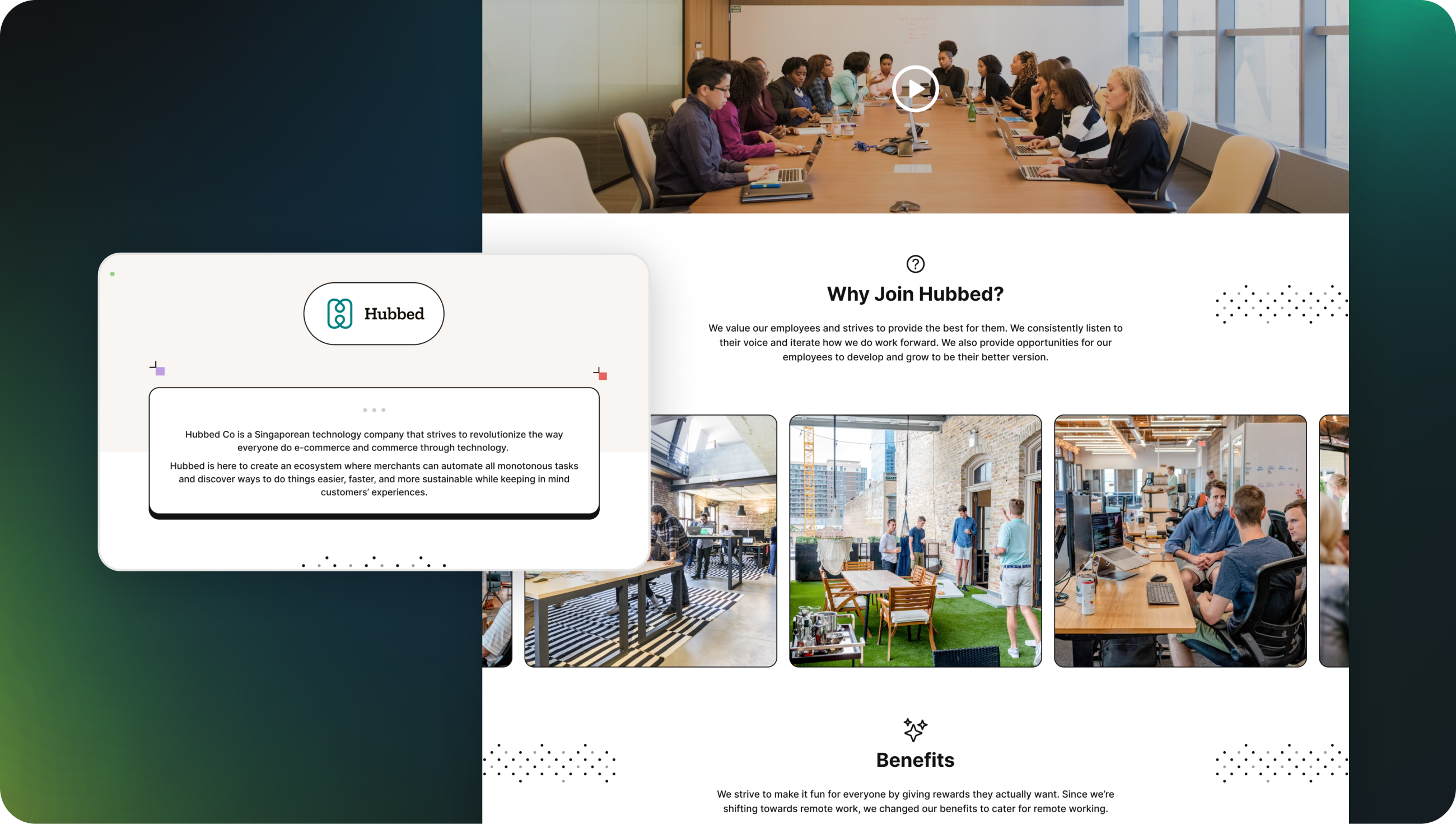 Build your digital brand with authenticity, values, and rich storytelling withHubbedin to attract top talents to work with you.