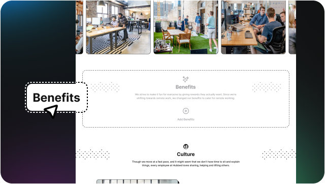 Your job listings are automatically updated and shown alongside your company story, making the experience seamless without hassle.As Easy As Drag & Drop