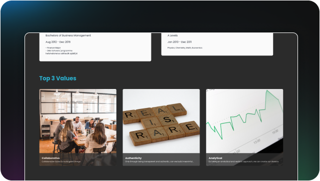 You don’t need to repetitively update your resume and re-share it again. With Story, you can just make the changes and everyone you shared your story with will get the update.Values-centered