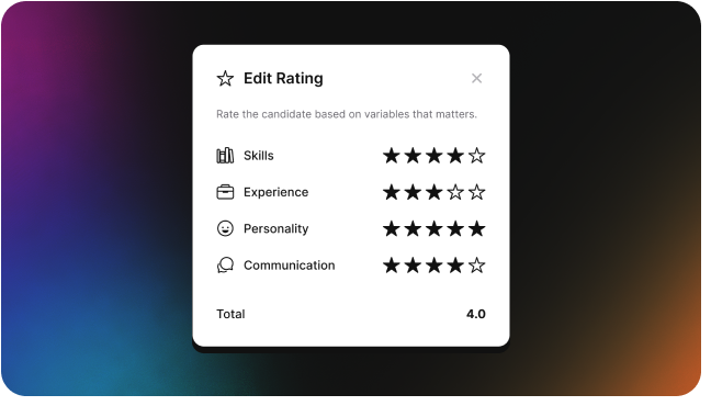 Not only can you write notes and rate their submission—but also rate their skills, experience, personality, and communication as an individual.